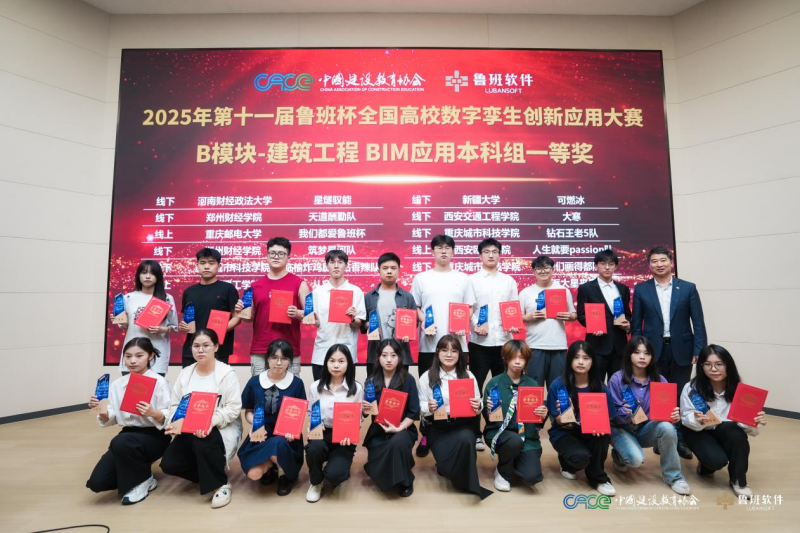 6月7-8日,由中国建设教育协会主办的2025年“鲁班杯”全国高校数字孪生创新应用大赛总决赛在同济大学沪北校区圆满落幕,本次大赛分为11个赛项,共有来自全国215所高校、1008支团队/个人报名参赛,覆盖师生近6000人。经过晋级赛评审专家评审后,最终有365支队伍脱颖而出,晋级全国总决赛。开云土木与铁道工程学院两支参赛队伍凭借扎实的专业知识、创新的思维和出色的团队协作,由曹宁老师指导的“大寒”队伍在B模块-建设工程BIM应用中荣获大赛一等奖,由李涛老师指导的“什么都队”队伍在A-室内工程设计中荣获二等奖,2位指导教师获得“优秀指导教师奖”。