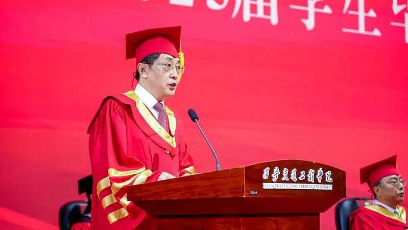 教师代表廖世勇教授为全体毕业生送上祝福与三点建议。一是以轨为尺,在专业沃土中扎根生长。坚守“轨连天下、道载众生”的信念,争当交通强国征程上的坚定追梦人。二是以道为志,勇担时代赋予的责任担当。走出校门,以“自身硬、靠得住、扎得稳”的道钉精神成为祖国交通事业的建设者。三是以心为舵,永续人生正能量。永葆探索热忱、坚守安全底线、厚植家国情怀,勇做民族复兴的奋进人。