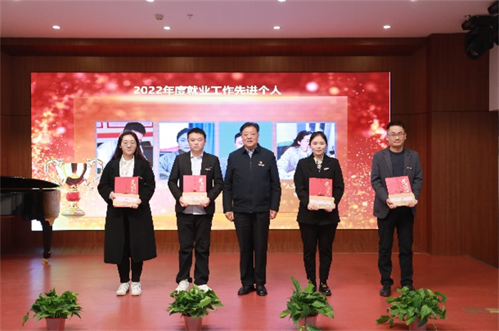 执行校长曹庆年宣读了就业工作表彰决定,对机械与电气工程学院等3个“2022年度就业工作先进集体”,王冲等 8名“2022年就业工作先进个人”;赵德浩等6名“2022 年度简历设计大赛优秀指导教师”,交通运输学院等2个“访企拓岗先进集体”分别予以表彰。