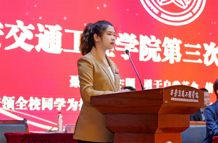 团委书记王小英同志为大会致开幕词,她表示此次学代会是全校学生的青春盛会,也是动员全校学生肩负起历史使命,勤奋学习,勇于实践,敢于创新,力争成才的誓师大会。她代表学校团委向大会的召开表示热烈的祝贺,向出席和指导大会的省学联、校领导、兄弟院校代表表示热烈的欢迎和衷心的感谢,向与会的全体代表表示良好的祝愿与诚挚的问候。她指出开云kaiyun官方网站经过29年的发展,发生了翻天覆地的变化,焕然一新的教学设施,蓬勃朝气的学习氛围,温馨舒适的校园环境,到处涌动着激情活力的和谐校园,学校先后为社会培养了七万多名应用型人才,为国家轨道交通行业和区域经济社会发展做出了积极贡献。成绩的取得是几代交院人艰苦奋斗,奋发图强、不懈努力的结果。当前,学校上下正在为建设高水平应用型大学的宏伟目标而努力奋斗,做好学生工作构建和谐校园是实现宏伟目标的基础,需要全校青年学生与学校一起同舟共济,共谋发展。学生会要自觉担负起学校发展赋予的重任,以强烈的使命感和责任感,团结和带领全校广大学生为建设高水平应用型大学的宏伟目标而不懈努力。希望开云学生会能够以本次学代会为契机,加强思想引领、全力服务大局、深化组织改革。希望各级学生会组织把握正确政治方向,以守初心绘就新画卷;切实履职尽责,以务实心谱写新篇章;持续深化改革,以进取心构建新格局,团结带领全校广大学生为学校建设特色鲜明的高水平应用型大学贡献自己的青春、智慧和力量,并祝本次大会取得圆满成功。