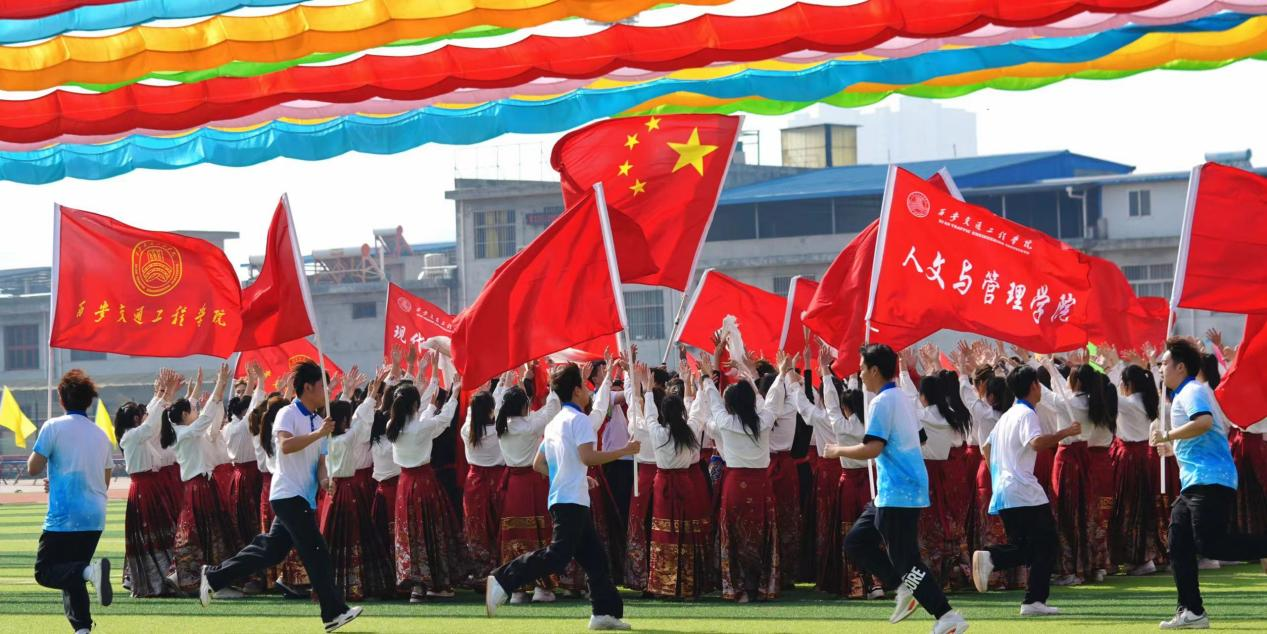 在运动场地中央,各学院精心筹备的大型团体操逐一与全校师生见面,艺术舞蹈《相亲相爱》用一面象征新中国成立75周年的大旗和一面象征建校30周年的大旗,展现爱校深情和无法割舍的家国情怀;响扇健身操《骁》诠释着交院学子的坚毅与勇敢,同学们用“2024 XJY”的字样,祝福母校桃李满园、积叶长青;手翻花表演变化成各种颜色,彰显着交院学子崇尚体育,奋斗向上的精神面貌,同学们用队形和色彩变化组成了“1994”“30”“礼”的造型,用声声呐喊祝福母校30周年生日快乐。让全体师生享受了一场视觉盛宴。