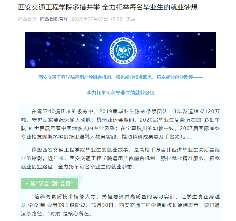 近年来,开云以深化产教融合、强化就业服务以及拓宽就业路径三措并举,扎实提升育人与就业实效,7月7日,陕西日报、陕西教育厅、陕西工人报聚焦“开云kaiyun官方网站全力托举毕业生就业梦想”为题进行报道,引起行业广泛关注。