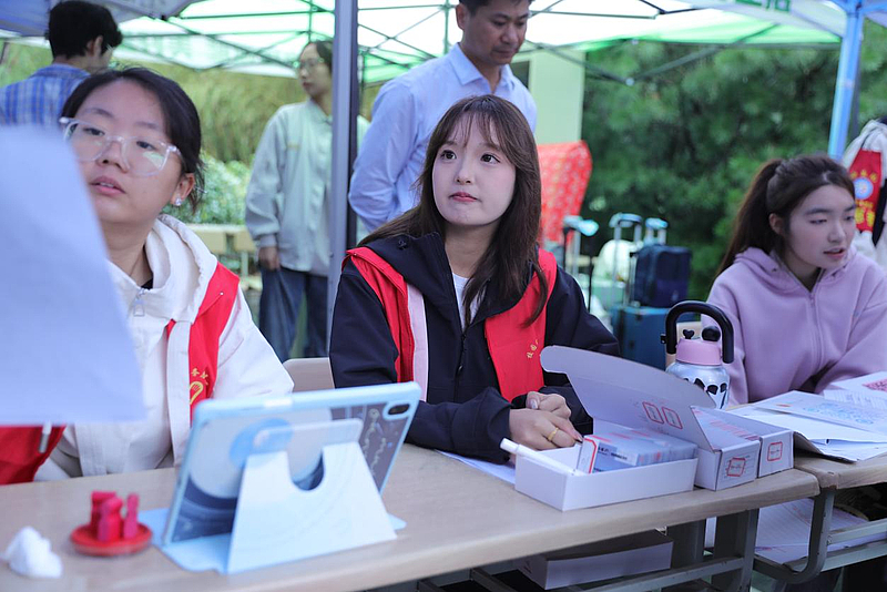 他们熟练地帮新生搞定报到流程,化身 “贴心生活向导”