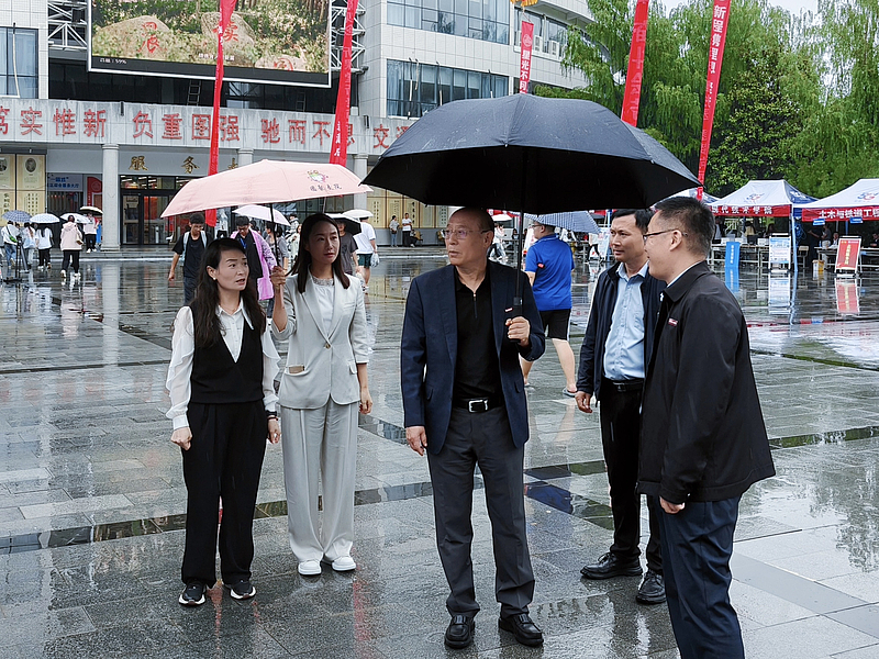西广场迎新点,校领导们拿起桌上的报到流程表