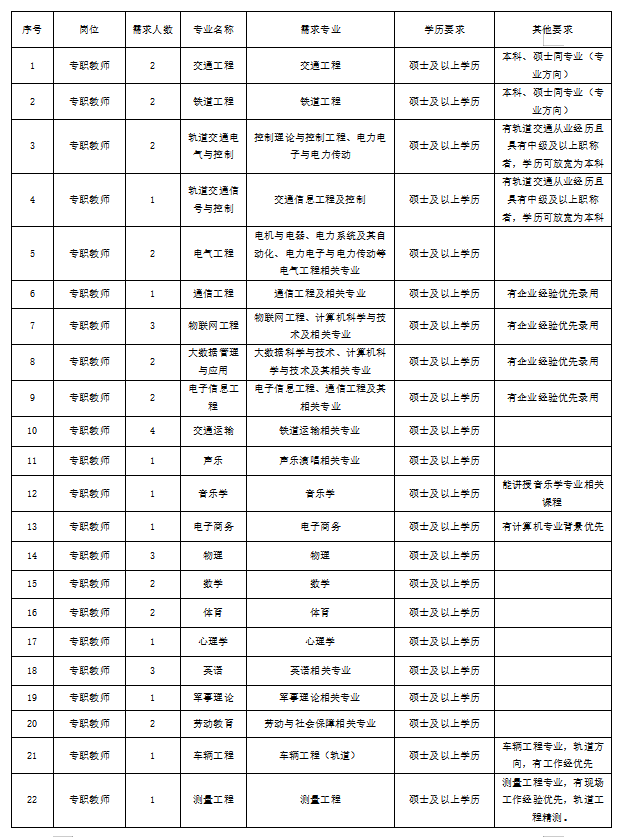 专职教师招聘计划