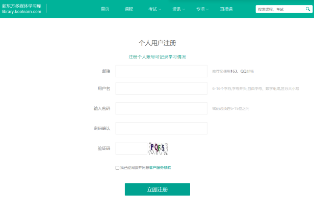 (3)完成注册后,在任意网络环境下使用个人注册账户登录library.koolearn.com即可使用开云购买的新东方资源。