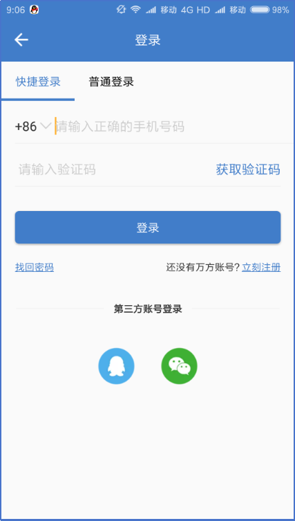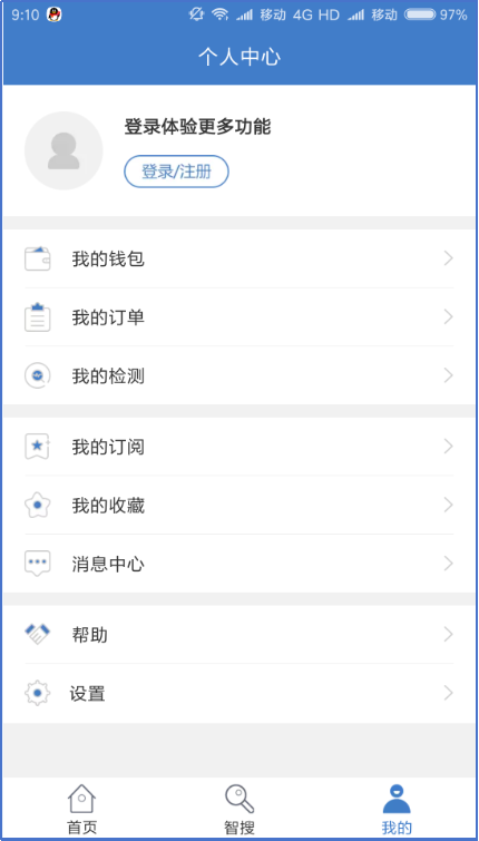 (1)打开万方数据APP,点击“我的”,进入个人中心,点击“登录/注册”,登录待绑定的个人账号。