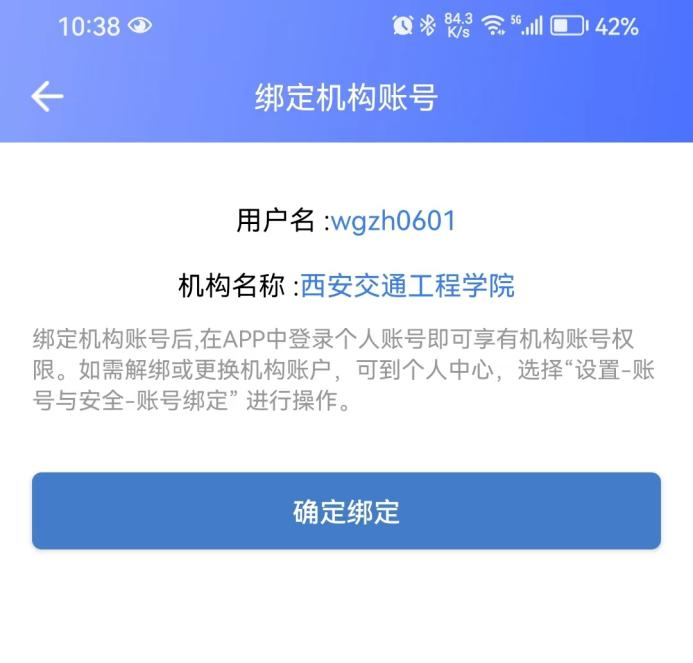 (3)扫描下方二维码,并核对个人账号及机构账号信息,点击“确认绑定”即可。