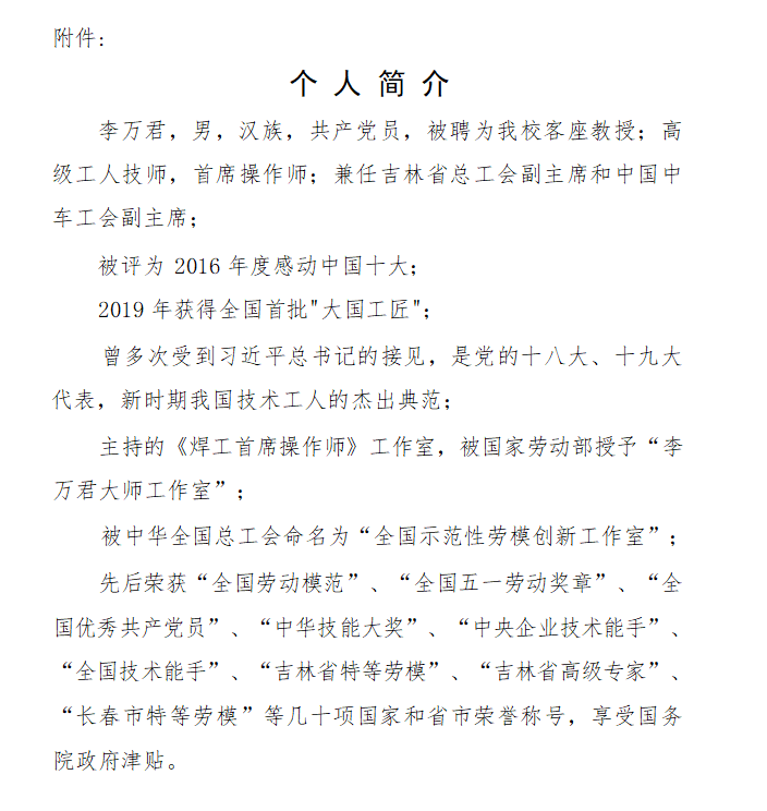 为深入贯彻党的二十大精神, 弘扬劳模精神、劳动精神、工匠精神,引导广大学生树立正确的职业观、价值观,激发其学习热情和创新精神,开云特邀请 “大国工匠”、“全国劳动模范”、 中车长春轨道客车股份有限公司首席操作师、国家级高铁焊接专家李万君教授,于近期为开云师生举办了“喜迎 30 年校庆大学文化论坛暨传承道钉精神、启航新征程新生入学教育”报告会。为进一步巩固讲座成果,深化学生对工匠精神的理解与认同,学校号召广大学生中继续学习讨论李万君成长奋斗故事,促进大学生树立远大目标,不断奋斗成长。