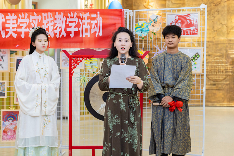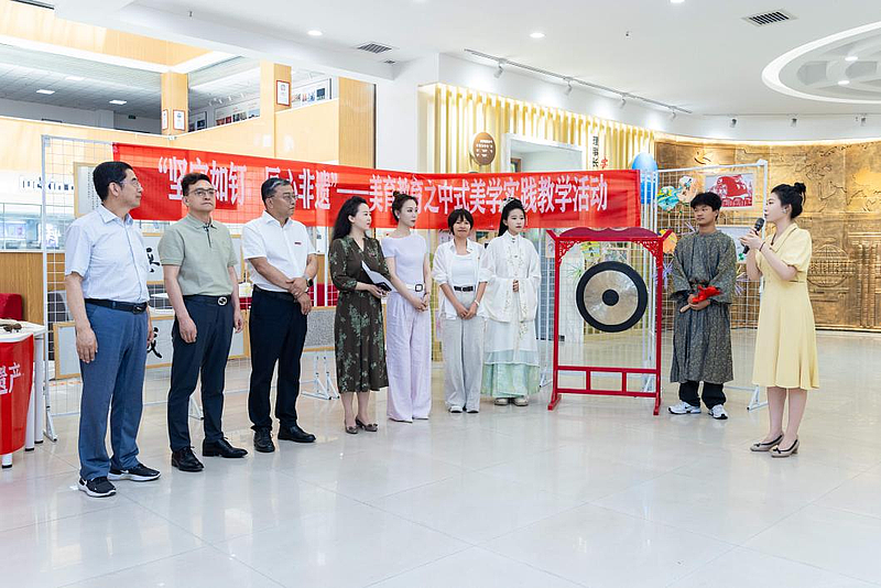 6月11日,美育中心在图书馆一楼隆重举行“坚守如钉,匠心非遗”—中式美学实践教学活动开幕仪式。旨在通过非遗艺术形式打造沉浸式美育课程,促进文化传承与教育创新的深度融合。执行理事张慧、副校长吴伟、财务总监刘建华、图书馆副馆长黄晓燕、人文与管理学院院长赵德利、美育中心主任宁慧等出席了开幕式。开幕式由美育中心白冰老师主持。