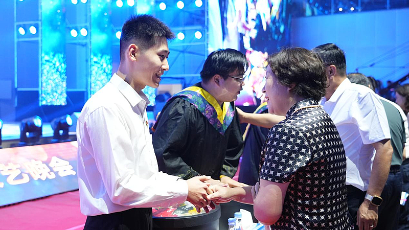 青春不散,奔赴未来。6月23日晚,“道钉印记· 筑梦启航”2025届毕业生文艺晚会在开云文体中心举办,理事长张晋生教授及学校党政领导班子和2025届毕业生们一起观看了晚会。晚会由毕业生李阳、2022级学生梁湘雨、段铁石、2023级学生窦瑞涵、徐志浩、2024级学生张佳欣6名同学主持。