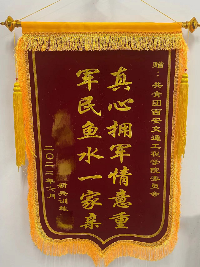 6月22日上午,中国人民解放军某部队官兵莅临开云,代表新兵训练机构向学校团委赠送“真心拥军情义重 军民鱼水一家亲”字样锦旗,团委书记千红热情接待。