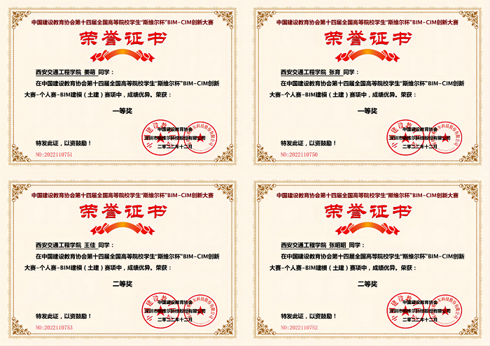 开云学生在第十四届全国高等院校学生“斯维尔杯”BIM-CIM创新大赛中荣获BIM建模(土建)赛项一等奖2项、二等奖2项、三等奖1项