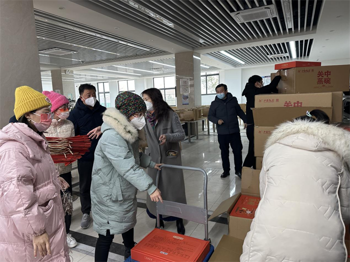 为了做好今年教职工福利慰问工作,校工会高度重视、精心组织筹划,为教职工购买了鄠邑特色的春节慰问品。每一份慰问品包装盒上都粘贴了慰问信,体现了学校浓浓的关爱和温暖,向教职工致以节日的问候,对大家一年以来为学校发展所做出的辛勤劳动和无私贡献表示感谢。全校各级工会干部积极行动,抢抓时间,坚守岗位,在放假前把慰问品送到每位教职工,送上学校的关怀和祝福,从而进一步增强归属感,激发教职工以更加饱满的热情投入到工作当中,为学校高质量发展贡献力量。