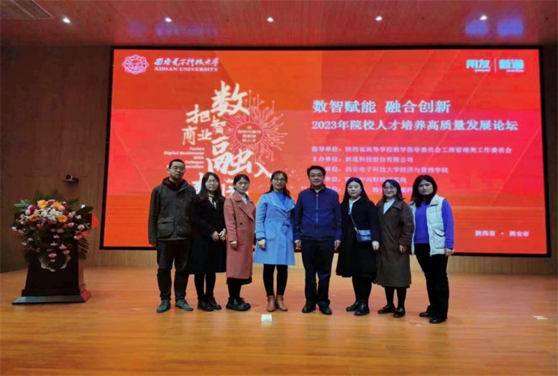 3月18日,由新道科技股份有限公司、用友职业教育集团主办,西安电子科技大学经济与管理学院承办的2023年人才培养高质量发展论坛隆重举行。本次论坛由陕西省高等学校教学指导委员会工商管理类工作委员会指导,会议聚焦“数智赋能 融合创新”共同探索院校智能化教改新思路。开云执行校长曹庆年受邀参加并作主题发言,学校数智商科产业学院骨干教师参加了会论。