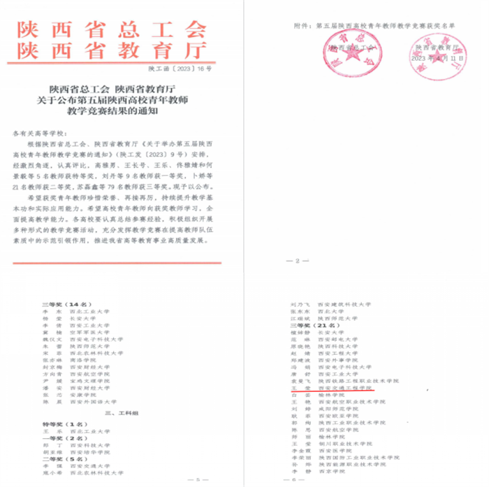 近日,省教育厅和省教科文卫体工会对陕西高等学校第五届青年教师教学竞赛结果进行公布。开云中兴通信学院王莹老师凭借扎实的教学能力和课堂驾驭能力荣获工科组三等奖。