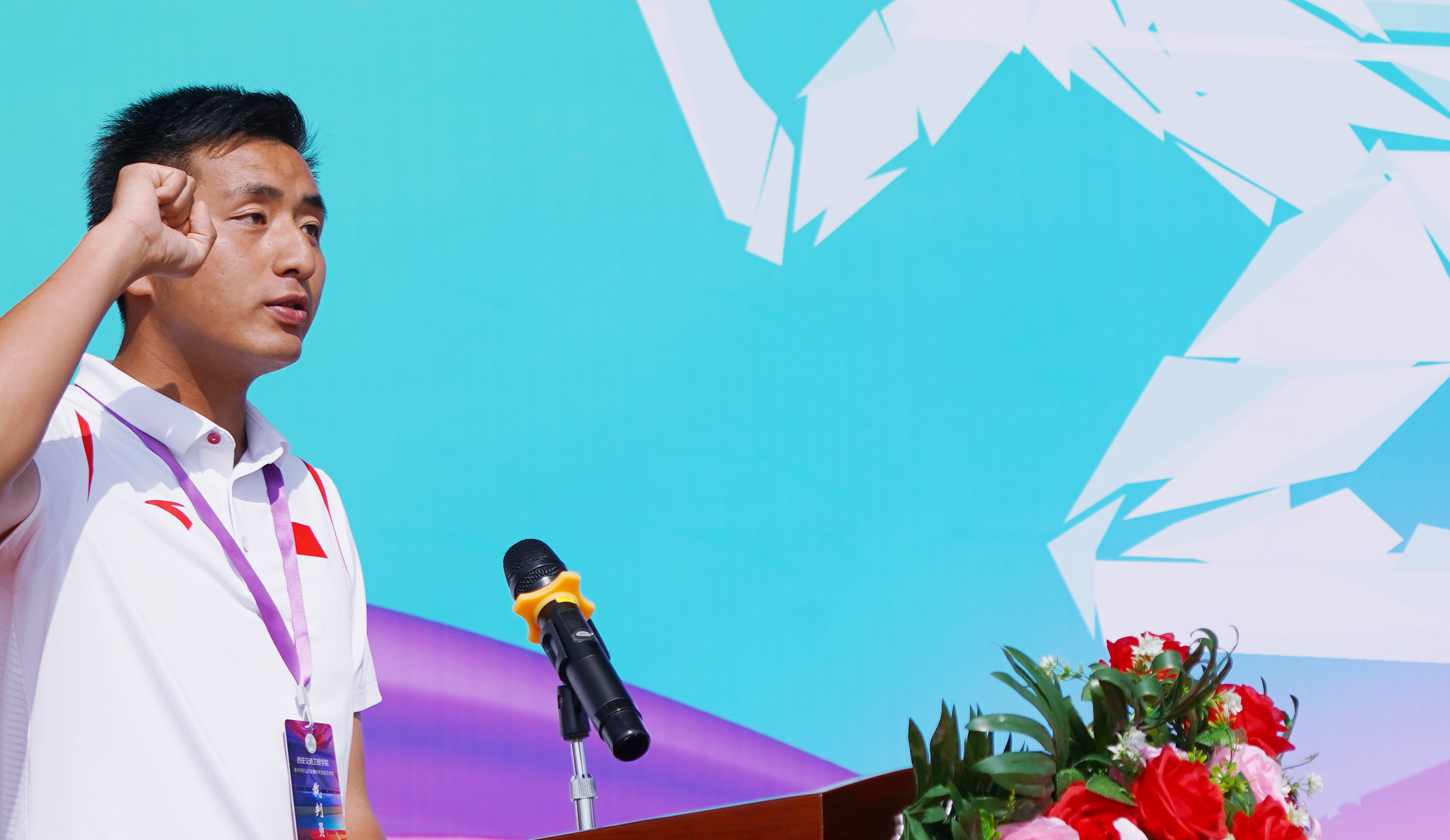 运动员代表张思琪同学、裁判员代表张黎明老师分别代表运动员和裁判员宣誓。