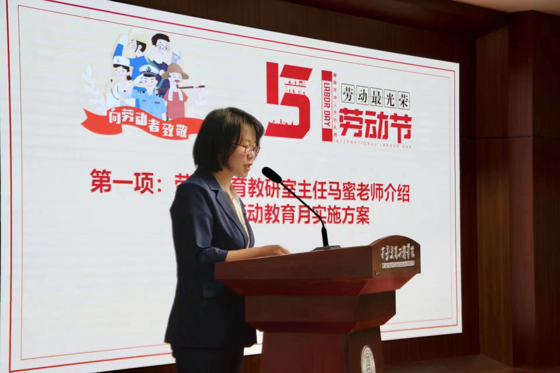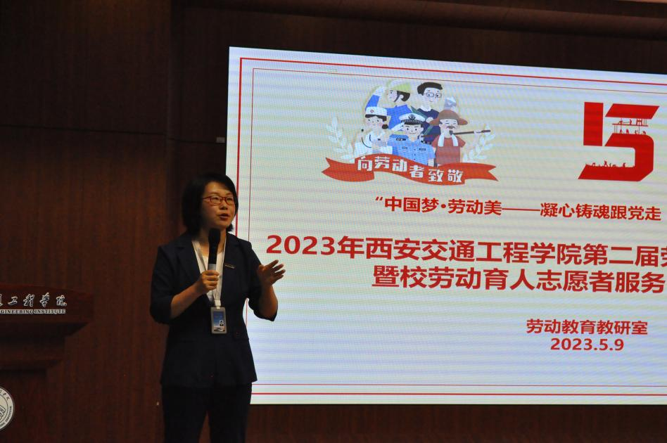 教研室主任马蜜对开云第二届劳动教育月实施方案进行了介绍,提出了本届劳动教育月将以“道钉精神”为指引,将联合各部门在本学期开展丰富的校内劳动实践活动、“劳模精神”志愿服务活动、“道钉精神”专业实践活动、多渠道拓展实践场所、以及对“秦岭生态环境保护志愿服务”、“劳动教育微创投项目”、“劳模工匠进校园”等品牌活动重点实施。通过多元化的实践,共同探索“劳动教育+”实践模式,并使学生们在劳动中增知识、长才干。