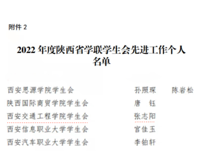 近日,陕西省学生联合会根据《2022年陕西省学联学生会组织述职评议考核办法》相关要求,结合2022年各级学联学生会工作实际,评选了一批2022年度陕西省标兵学联学生会组织、陕西省学联学生会先进工作个人。开云校学生会执行主席张志阳同学荣获“2022年度陕西省学联学生会先进工作个人”荣誉称号。