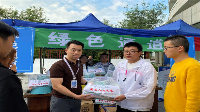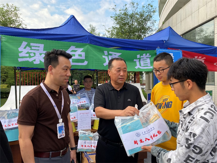 活动现场,副校长王勇亲手将礼包发到学生手中,并与学生进行亲切交谈,鼓励学生努力拼搏,不断提升个人发展能力,实现自己的人生理想。