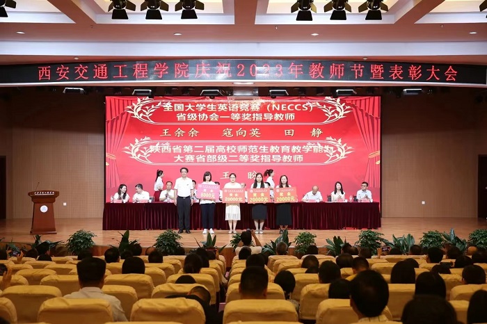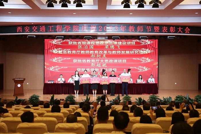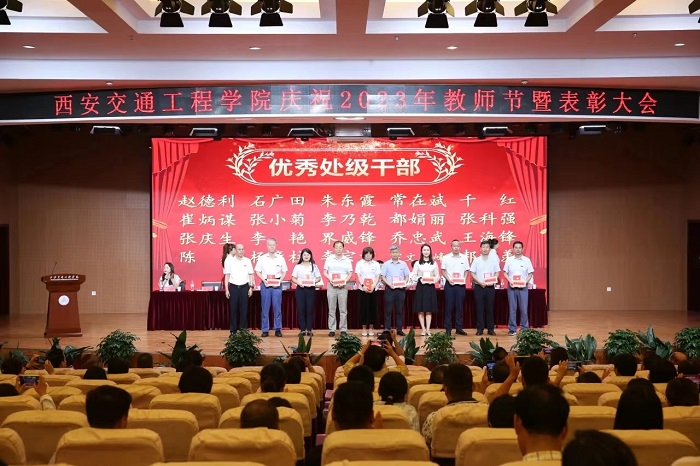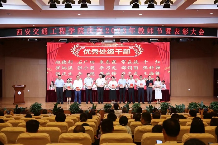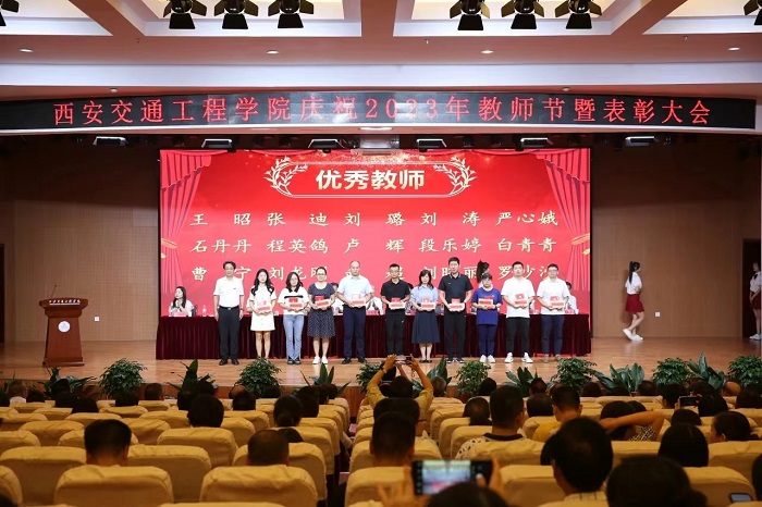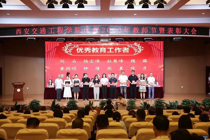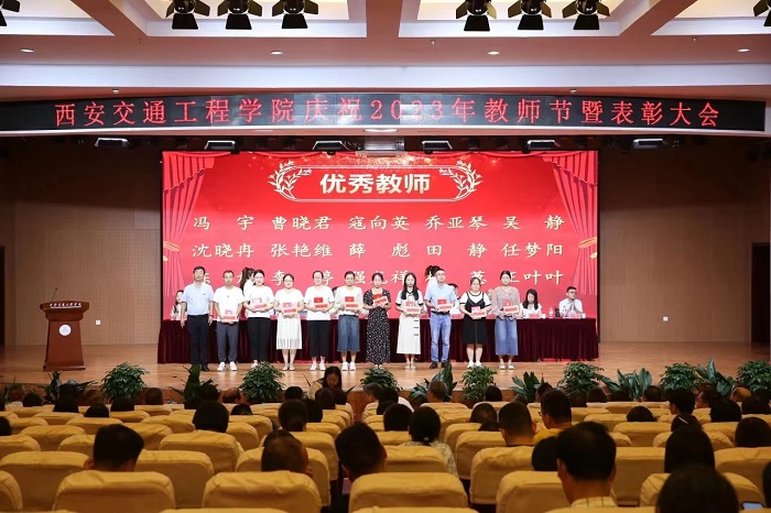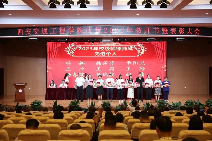 校长刘建朝代表理事长张晋生教授、学校党政领导班子,向全体教职工表示节日的问候和最崇高的敬意!向受到表彰的教职工表示热烈的祝贺。他指出,多年来,全体教师不忘教育初心,牢记树人使命,敬业精业,培育英才,为学校发展做出了很大贡献,涌现出了一大批爱岗敬业、恪守师德、有突出成就和贡献的教师,更有许多热心教育事业、坚守工作岗位,默默无闻、勤勤恳恳,为了学校发展而倾注心智的教职工,他们是西交院“最可爱的人!他对全校教师提出四点要求:一是突出思想引领,强化育人使命;二是树牢理想信念,恪守教书育人之道;三是端正师德师风,提高道德修养;四是不断提升专业素质,强化教育教学能力。他希望全校广大教师甘为人梯,乐于奉献;静下心来教书,潜下心来育人,努力成为学生爱戴、人民满意的教师,无愧于“人类灵魂工程师”的光荣称号,为培养新时代德智体美劳全面发展的应用型人才,为学校事业的发展做出新的更大贡献!