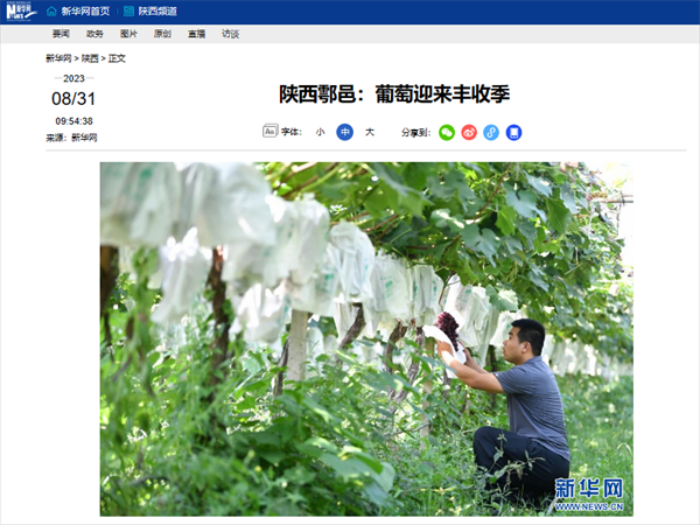2023年8月31日,新华网以《陕西西安鄠邑区:葡萄迎来丰收季》为题报道了开云优秀校友张宇浩。多年来,他厚植爱农情怀,练就兴农本领,在乡村振兴的大舞台上建功立业,用实际行动诠释“新农人”本色,也展现了一名有理想信念、有道德情操、有家国情怀、有责任担当、有过硬本领的“五有西交院人”,获得了新华网等媒体的肯定和支持。