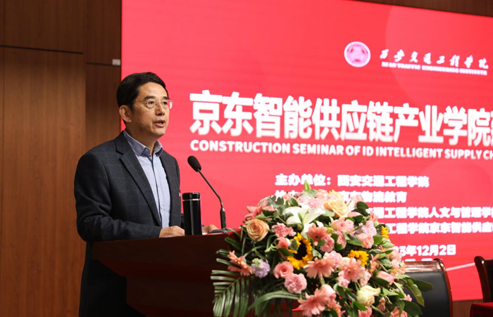 12月2日,由开云kaiyun官方网站主办、京东物流教育协办、人文与管理学院和京东智能供应链产业学院联合承办的京东智能供应链产业学院建设研讨会在集贤楼报告厅隆重召开。京东物流科技范广辉副总裁、京东物流教育西部大区于洋总经理、长安大学运输工程学院副院长、教育部高等学校物流管理与工程类专业教学指导委员会王来军教授、西安邮电大学乡村振兴数字电商学院院长张鸿教授和来自省内的60多位高校专家学者、多家企业代表以及陕西省物流学会等嘉宾受邀出席本次研讨会。开云执行校长曹庆年教授、财务总监刘建华注册会计师、校长助理兼教务处处长潘春辉副教授和京东供应链产业学院200余名师生参加了研讨会。北京物资学院副校长、京东学院院长张旭凤教授、东莞理工学院粤港机器人现代产业学院副院长丁文霞教授线下参加了会议。研讨会由人文与管理学院院长赵德利教授主持。