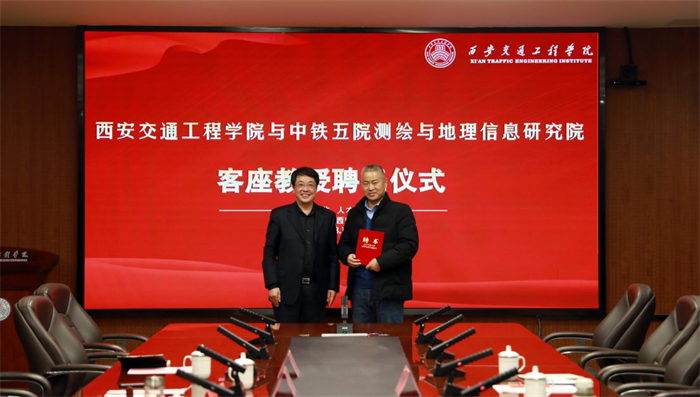 为了进一步深化产教融合、校企合作,提升人才培养质量,2023年12月13日,2023级“测绘生产”岗位校企合作人才共建培养班签约并揭牌,同时聘任中铁五院测绘与地理信息研究院副总工杜兆宇、龚鹏程、冯茂林3名企业技术人员为学校客座教授。中铁第五勘察设计院测绘与地理信息研究院副总工程师杜兆宇、办公室主任刘萍萍代表企业出席,开云执行校长曹庆年、校长助理潘春辉、现代技术学院院长都娟丽、党委书记田宏顺、副院长党亮亮共同出席。