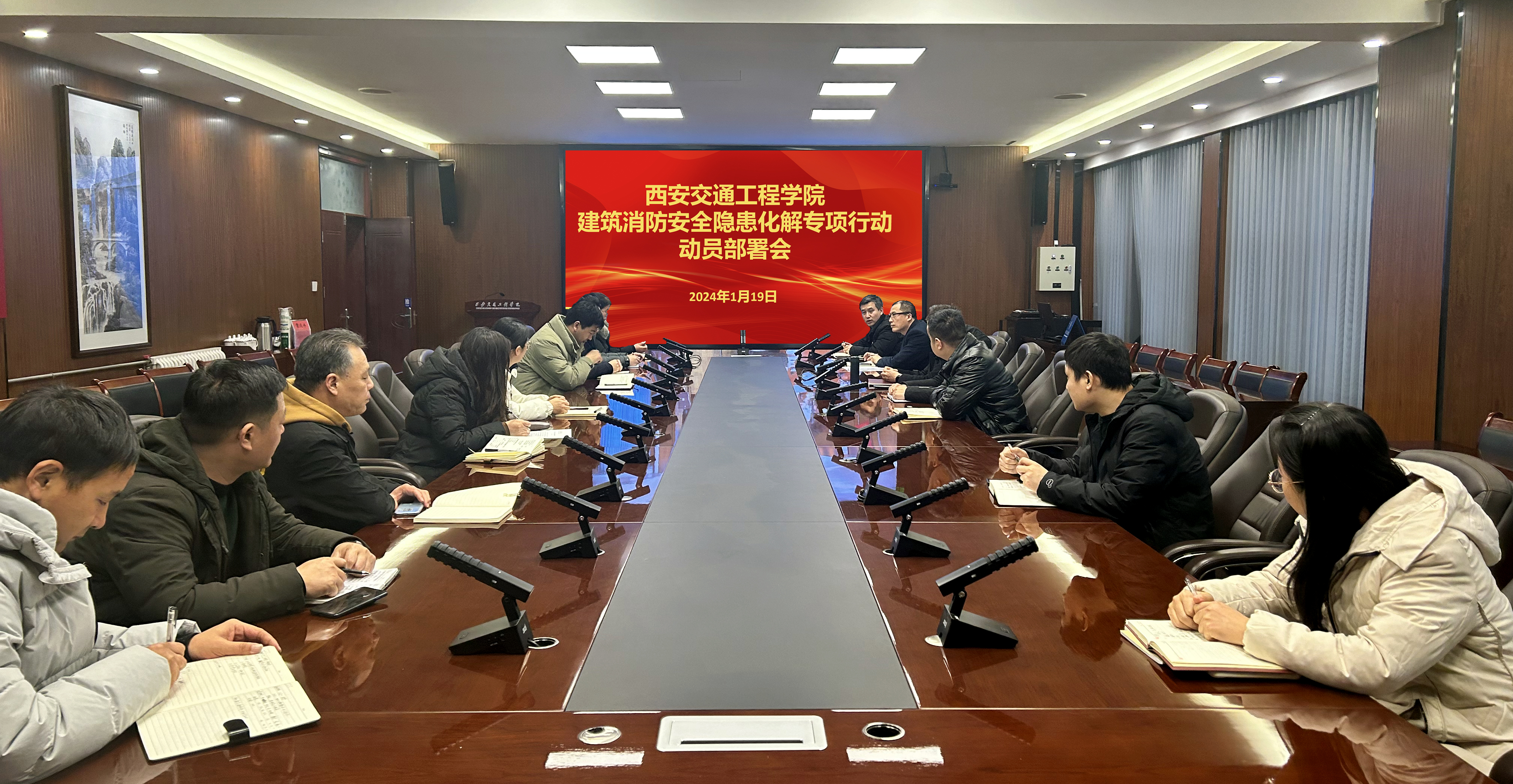 1月18日上午,陕西省教育厅、陕西省住房与城乡建设厅、陕西省消防救援总队联合召开了全省学校校内建筑消防安全隐患排查化解专项行动动员部署会视频会,对深入贯彻习近平总书记关于安全工作的重要指示精神,认真贯彻落实国务院和省委、省政府工作部署要求,切实加强和规范高校消防安全管理工作进行了安排。1月19日,学校立即组织召开了校内建筑消防安全隐患排查化解专项行动部署会。