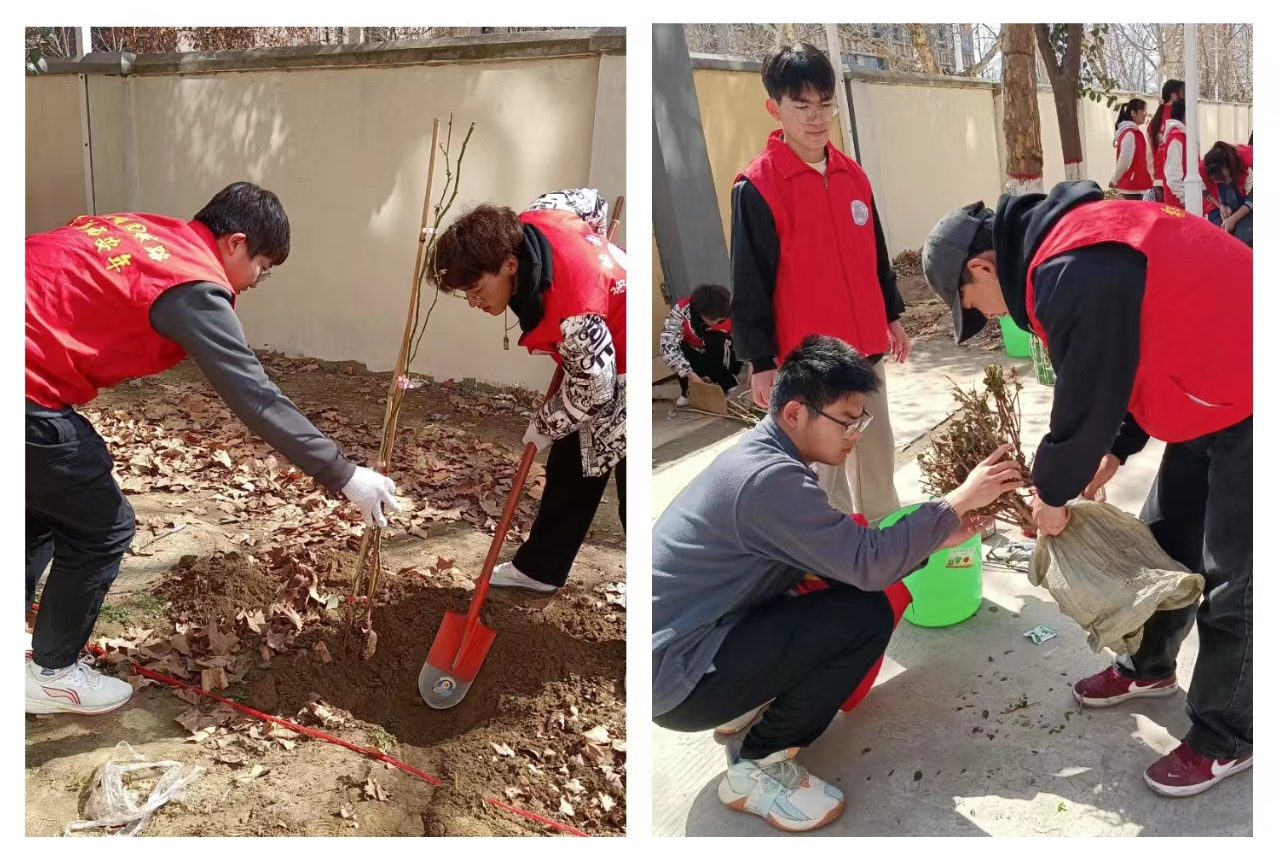 ——在鄠邑区东索村开展植树节劳动教育实践活动。3月12日植树节当日,开云组织机电学院、土木工程学院师生50余人走进开云鄠邑区东索村开展以“传承红色基因 助力乡村振兴”为主题日植树节活动,活动现场开云师生首先学习了东索村革命烈士的爱国故事,以此为鼓舞,用行动彰显青年担当,走进东索村的植树地点搂起袖子加入到劳动场景中,大家干劲十足,分工合作,完成挥锹、铲土、扶苗、培土、种树、浇水等植树环节,经过两个多小时的努力,为村庄的生态文明建设增添了一抹绿意。