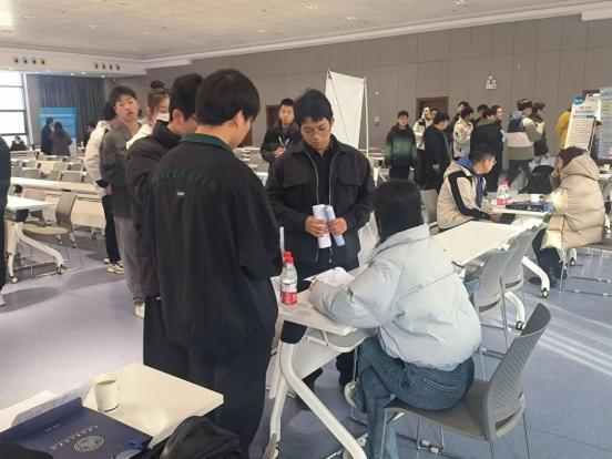 招聘会现场毕业生积极踊跃,手持就业材料,在企业招聘展位前查看招聘信息和就业岗位。对心仪的单位,排队投递简历,仔细咨询了解用人单位的工作环境、工作待遇、发展空间等。毕业生表示比较看重公司的实力以及发展前景,希望能够找到符合自己的岗位。