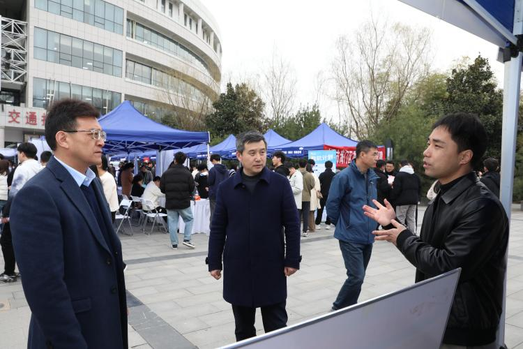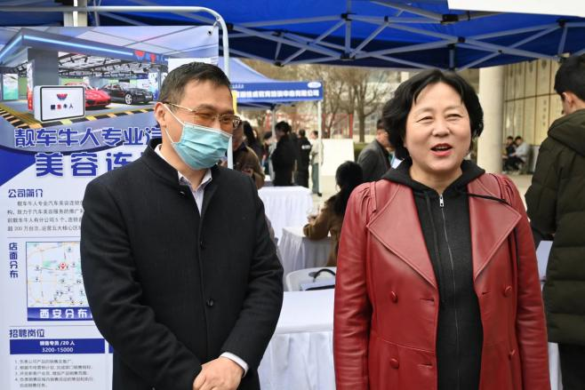 陕西省学生就业与留学服务中心就业部部长陈靖、南通市海门区人社局副局长张志强、鄠邑区人才交流中心主任王毅、理事长张晋生、党委书记李萍、副校长石广田、张学堂、徐炜、赵征、财务总监刘建华、党委副书记兼工会主席张庆生等领导亲临现场,实地考察用人单位招聘情况和学生的求职意愿,并对各用人单位的到来表示欢迎。