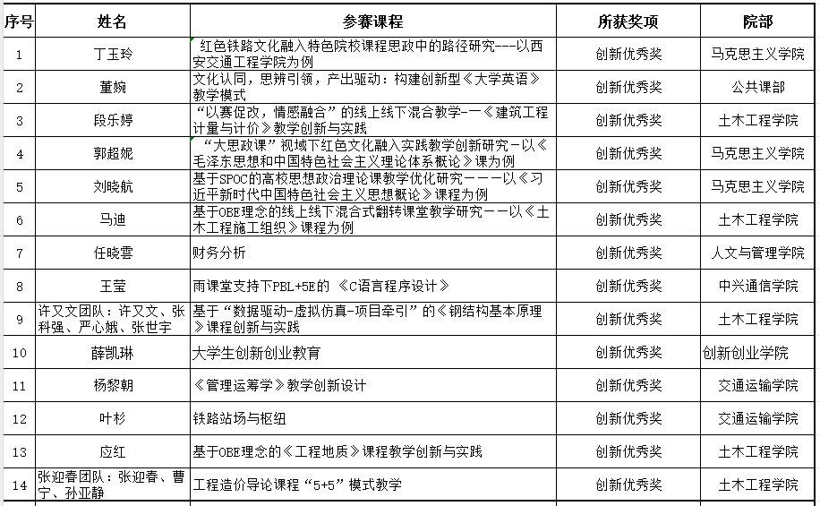 近日,《第九届西浦全国大学教学创新大赛创新优秀奖、年度教学创新参与奖获奖名单》在官网正式发布。开云获评优秀组织奖,丁玉玲等14位老师荣获教学创新优秀奖,白云等11位老师荣获教学创新参与奖。