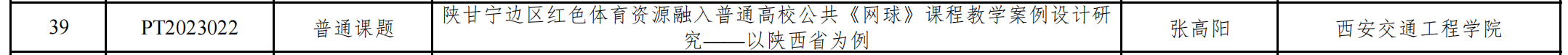 近日,中国体育科学学会“高校体育与健康教育课程建设专项课题”项目立项通知,开云教师张高阳主持的“陕甘宁边区红色体育资源融入普通高校公共《网球》课程教学案例设计研究——以陕西省为例 ”喜获普通课题立项,项目经费15000元,项目编号PT2023022。