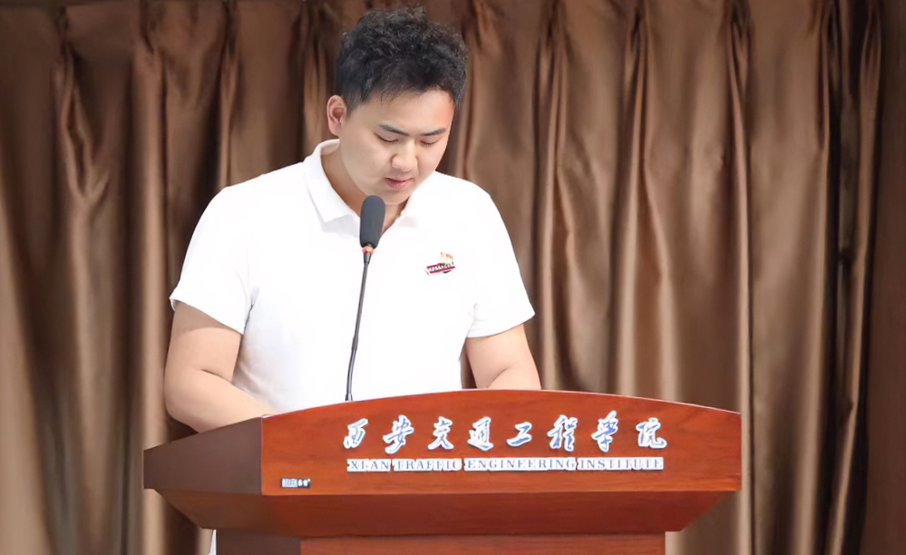 优秀学生代表来自交通运输学院的努尔艾力·奴尔麦麦提发言。他分享了自己的成长经历和学习心得,表达了对学校优美环境和团结互助氛围的热爱,并对学校和老师们的培养之恩表示了感激之情。他表示将继续努力,在学术上不断精进,为实现自己的人生目标而不懈奋斗。