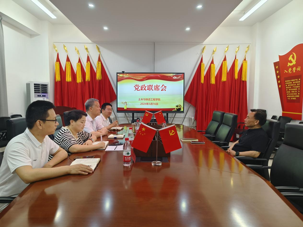 5月16日上午,副校长张学堂在崇文楼3-212会议室参加了土木与铁道工程学院党政联席会议,深入了解该院党政联席会议议事规则执行落实情况,并提出具体指导意见。