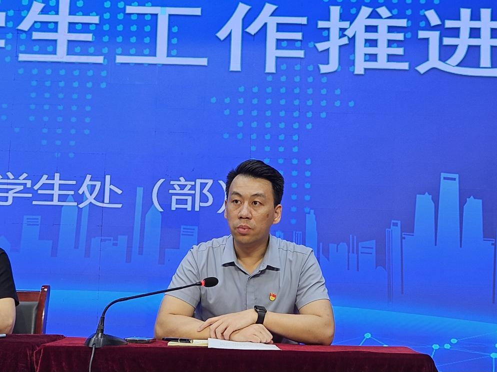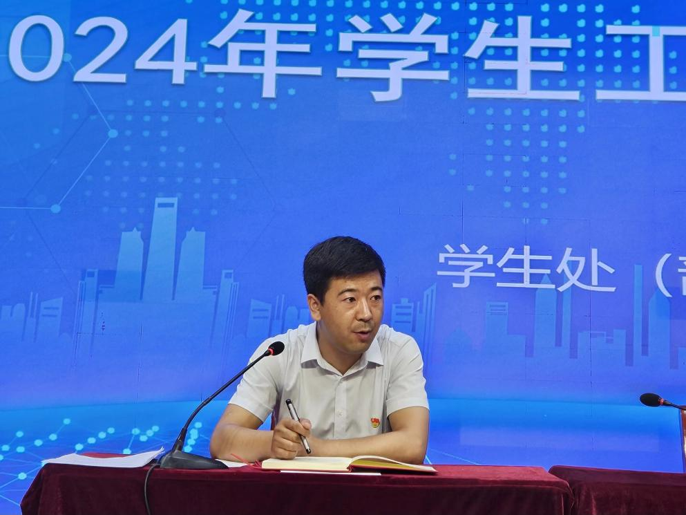 副校长张学堂就全力推进学生工作提出六个抓手。一是抓规划,包括制定全面、系统的安全稳定工作计划,明确工作目标、任务和责任人,同时结合学校实际情况和发展趋势,注重规划的科学性和前瞻性。二是抓重点,要针对学生工作中存在的突出问题、重点领域和关键环节以点带面,寻求突破。三是抓创新,学工队伍要在工作中提出新思路、新方法,加强对学生工作的探索,以提高工作的针对性和实效性。四是抓效益,安全稳定工作要注重效益和结果,要确保各项措施落到实处,注重对安全稳定工作的监督和评估,及时发现和解决问题。五是抓特色,要充分利用学校独特的文化特点和资源优势,积极探索符合本校实际的安全管理模式,形成具有特色的安全稳定工作体系。六要抓落实,确保各项措施得到有效执行,不走过场,不流于形式。