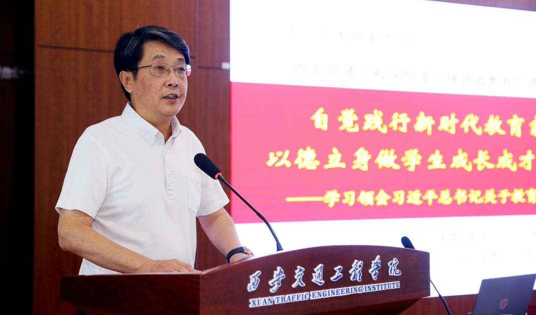 为深入学习贯彻习近平总书记关于教育的重要论述特别是关于大力弘扬教育家精神的重要指示,认真落实《中共陕西省委教育工委 陕西省教育厅关于弘扬教育家精神 引领高素质教师队伍建设的指导意见》精神,持续加强开云师德师风建设,6月14日,开云在集贤楼二楼多功能报告厅举办了“自觉践行新时代教育家精神 以德立身做学生成长成才的引路人——学习领会习近平总书记关于教育的重要论述”专题报告会。本次报告会邀请了陕西师范大学李宗嗣教授作为主讲嘉宾,相关校领导、二级学院(部)院长(主任)、副院长(副主任),学生管理队伍相关领导,全体自有、外聘教师,全体辅导员参加本次报告会。本次报告会由校长曹庆年主持。