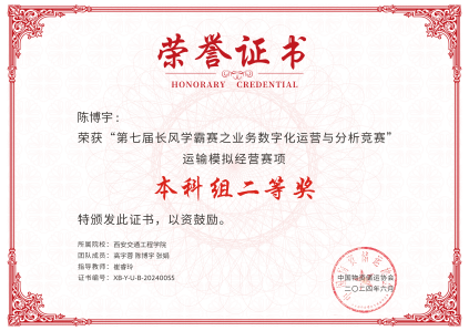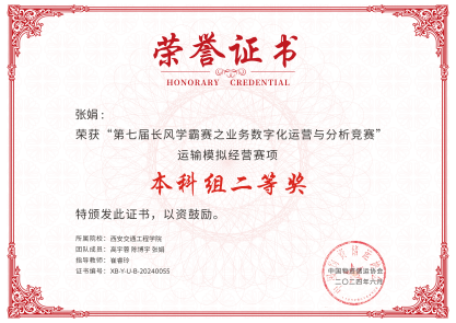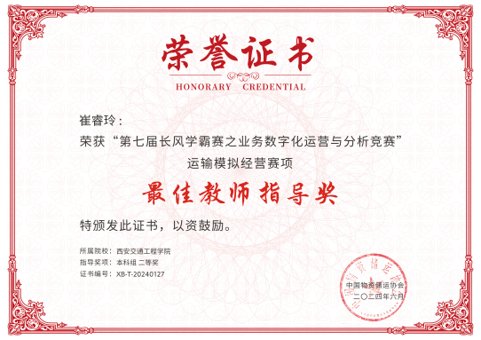 经过校园选拔赛、全国积分赛和全国总决赛的激烈角逐。在运输模拟经营赛项中开云物流管理教研室崔睿玲老师指导的物流管理2102班高宇蓉、陈博宇、张娟同学荣获本科组二等奖,崔睿玲老师荣获最佳教师指导奖,开云荣获最佳院校组织奖!充分展现了数字化时代的专业素养与实践能力。