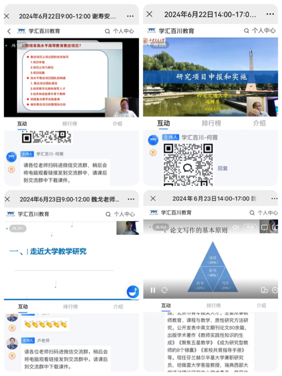 第三场和第四场是由首都师范大学魏弋教授作的题为“数字化技术赋能高质量大学教学论文写作与发表”和“生成式人工智能对大学教学研究的支持路径”专题培训。魏教授分别从数字化新赛道上的大学教学研究、数字化大学教学研究论文写作路径、GAI支持下大学教学研究顶层设计和主要策略等方面作了详细培训。