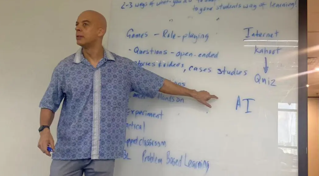 新加坡华中国际英文教学名师Richard基于成果导向教育和学习者中心的核心理念,带领教师们分析四类课堂教学着重团队学习操作的创新模式与引导策略,如Team-Based Learning、Flipped Classroom、Problem-Based Learning、Project-Base Learning,将原本教师为中心的课堂转化为以学生为中心的课堂。