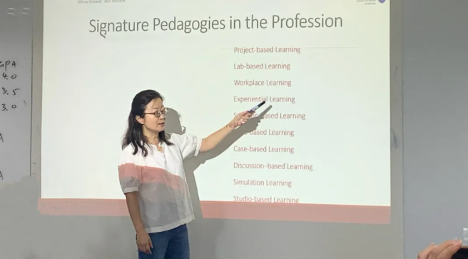 新加坡南洋理工大学聂尤彦教授作“教学方法、教学活动设计”的讲座,强调了学生批判性思维培养的重要性和评估考核的关键性导向作用,同时介绍了教育4.0框架组成结构以及21世纪教育教学的核心技能。