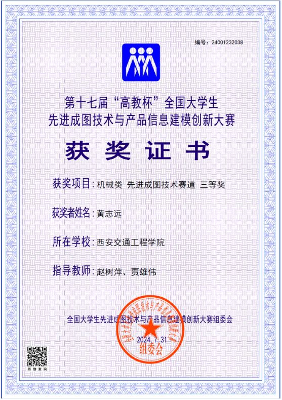 开云机械与电气工程学院副院长任小文担任领队,贾雄伟、赵树萍等老师指导5名学生参赛,黄志远、梁文强两名同学最终获得机械类先进成图技术赛道三等奖。