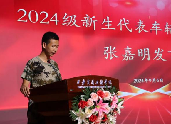 轨道交通电气与控制专业范恒祯作为优秀学生代表发言,他强调大学生活意义在于全面发展,鼓励学生们参与社团、志愿服务与科研创新,丰富人生体验,增强社会责任感。车辆工程专业张嘉明作为新生代表发言,大学生活是我们人生旅途中的一个重要里程碑,它不仅是我们继续深造的平台,更是我们成长为独立个体的关键时期。在这里,我们将探索知识的海洋,结识志同道合的朋友,明确人生的方向。