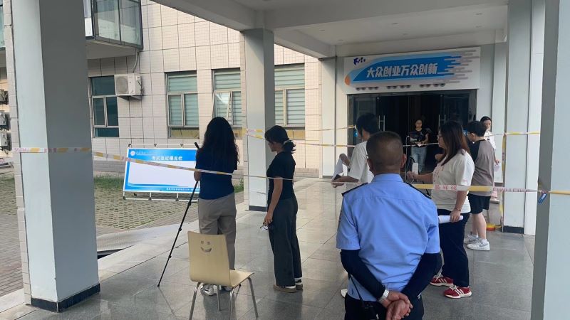考试当日,考务组有序进行各项工作。考前30分钟内,考生人脸识别确认、到达候考区候考;考前15分钟仔细核查考生有效身份证件及违禁物品携带情况;考前5分钟,指导考生登录考试系统,输入准考证号,严格执行考场纪律。