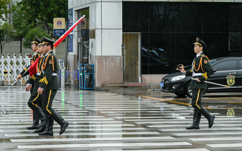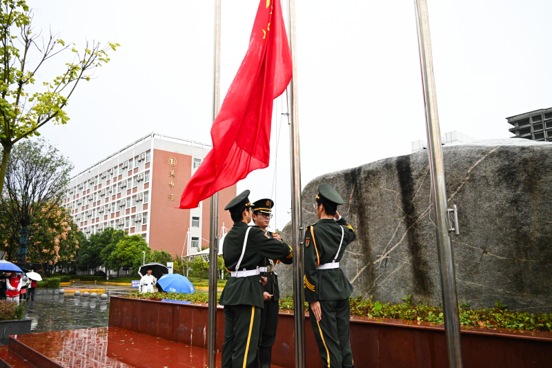 清晨的校园在晨光中显得格外庄严肃穆,国旗护卫队队员们整齐列队,以饱满的精神面貌护送鲜艳的五星红旗入场。伴随着雄壮的《义勇军进行曲》,国旗徐徐升起,迎风飘扬在校园的上空,象征着新中国75年来的辉煌历程和人民不懈奋斗的成果。全场师生肃立,目视国旗,表达着对国家的崇高敬意。随着雄壮的国歌声响起,升旗手奋力一挥,五星红旗在全体师生的注视下冉冉升起,迎风飘扬。全体师生齐声高唱国歌,歌声响彻云霄。全体师生面对红旗,共同合唱《我和我的祖国》,大家用悠扬的歌声表示对祖国的热爱。