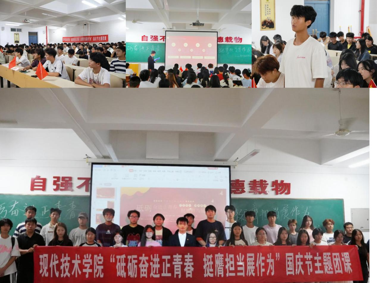 现代技术学院精心策划并组织开展“盛世华诞谱新篇,同心共筑中国梦”喜迎新中国成立75周年系列活动。举办“国庆挥墨绘盛景,三十校庆书华章”书画展,用笔墨描绘出祖国的壮丽山河和学校建校三十年来的辉煌成就;召开“砥砺奋进正青春,挺膺担当展作为”主题团课,团员代表带领全体团员回顾新中国成立以来的光辉历程,深入阐述砥砺奋进的重要意义和青年担当的时代责任。鼓励青年团员们要坚定理想信念,勇于担当作为,在新时代的征程中展现青春风采;开展“我和国旗合个影”摄影征集活动,一幅幅生动的合影,传递出我校学子对祖国的热爱与敬仰,彰显学子们积极向上的精神风貌和为祖国繁荣富强而努力学习的坚定决心。