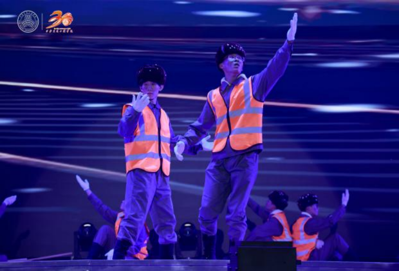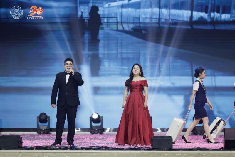 青春刚劲的街舞《传承》表达着学校一路走来的坚韧与执着。歌舞《高铁来了》用优美的歌声和灵动的舞姿,展现了高铁时代的到来给人们生活带来的便利和改变。朗诵《我们这三十年》深情地回顾了学校三十年的发展历程,从1994年学校创立,理事长张晋生教授怀着教育情怀和报国志向开启办学之路,到三迁校址、四易校名,学校不断发展壮大。朗诵中,大家回忆了张晋生教授建设校区的艰辛,立志要铭记校训精神,愿做道钉、贡献力量的决心,每句话语都饱含着对学校的深情与眷恋。