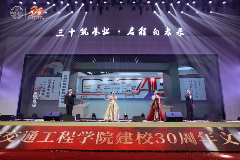 晚会以“三十筑基业,启程向未来”为主题,分为“初心 岁月峥嵘”“深耕 薪火相传”“逐梦 笃行致远”三个篇章,生动展现了学校勇立潮头、不懈奋进的青春风华和自强不息、修德载物的西交院精神。聂磊老师、2015级学生闫倩颖、2022级学生梁湘雨、段铁石、2024级学生吴旭5名师生担任主持人。