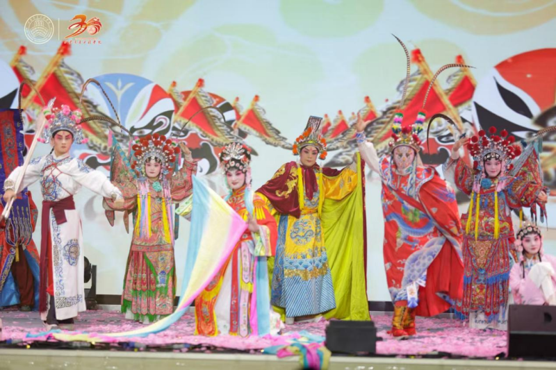 歌曲《锦绣前程》充满对美好未来的憧憬与向往,祝福学校拥有锦绣般灿烂的前程,在教育界大放异彩,成为莘莘学子梦想起航的最佳港湾,为社会输送一批又一批德才兼备的栋梁之材。陕西歌舞大剧院的演员们带来的戏曲节目《梨园荟萃》让人眼前一亮,他们一招一式,皆是功夫。几位演员通过精湛的表演,瞬间营造出千军万马奔腾的气势,金戈铁马之声仿佛就在耳边。台下的观众沉浸其中,被这独特的东方艺术所折服,每一个精彩之处都赢得如雷般的掌声。